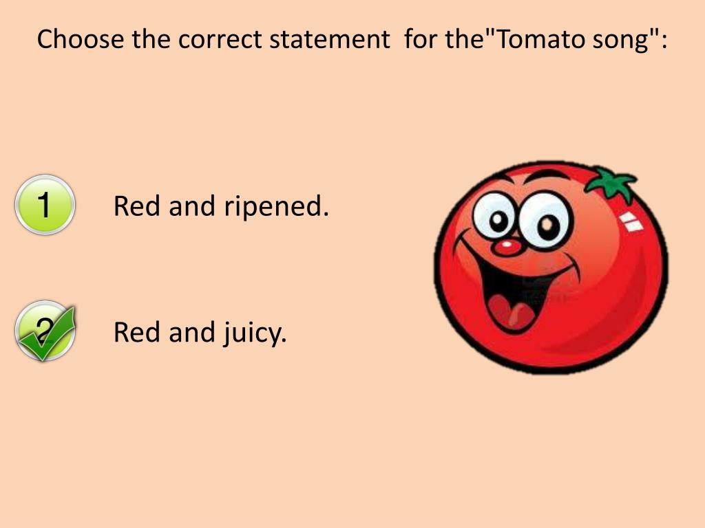 Choosethecorrect statementforthe"Tomatosong": Red and ripened. Red and juicy.