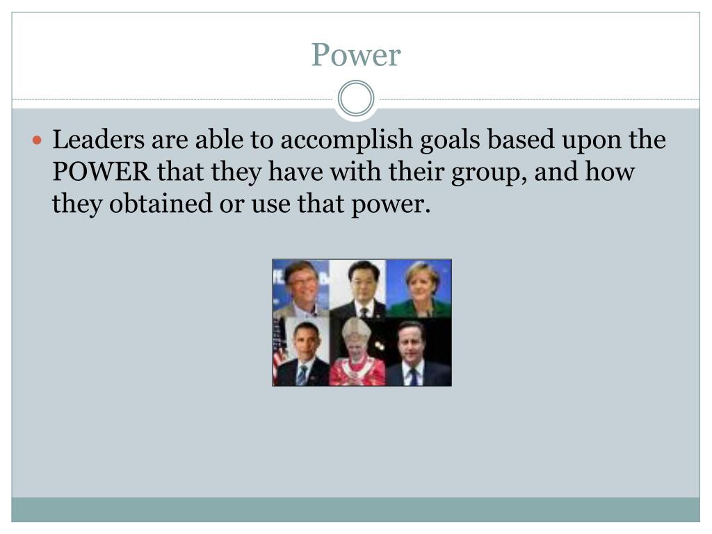 Power Leaders are able to accomplish goals based upon the POWER that they have with their group, and how they obtained or use that power.