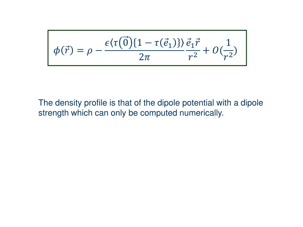 Non-interacting particles • Time evolution of density: The steady state equation particle density electrostatic potential of an electric dipole