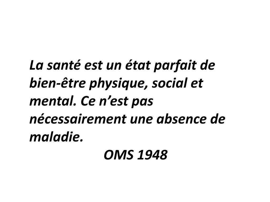 La santé est un état parfait de bien-être physique, social et mental. Ce n’est pas nécessairement une absence de maladie. OMS 1948