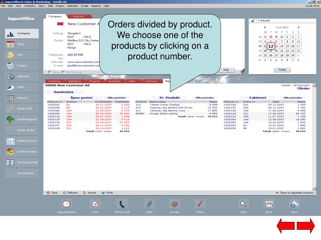 "With the complete overview of orders and delivery status, open records and historical bill, you can increase the level of service and your customer relationships." "Project overview from project accounts to journal level creates full control in the project" "The opportunity to open a copy of all electronic vouchers / invoices will streamline your business" Reporting SuperOffice CRM <- Microsoft Dynamics