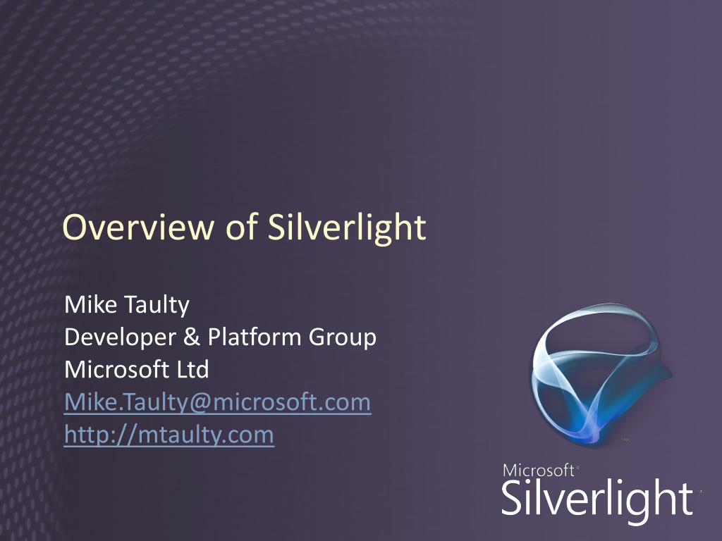 Overview of Silverlight Mike Taulty Developer & Platform Group Microsoft Ltd Mike.Taulty@microsoft.com http://mtaulty.com