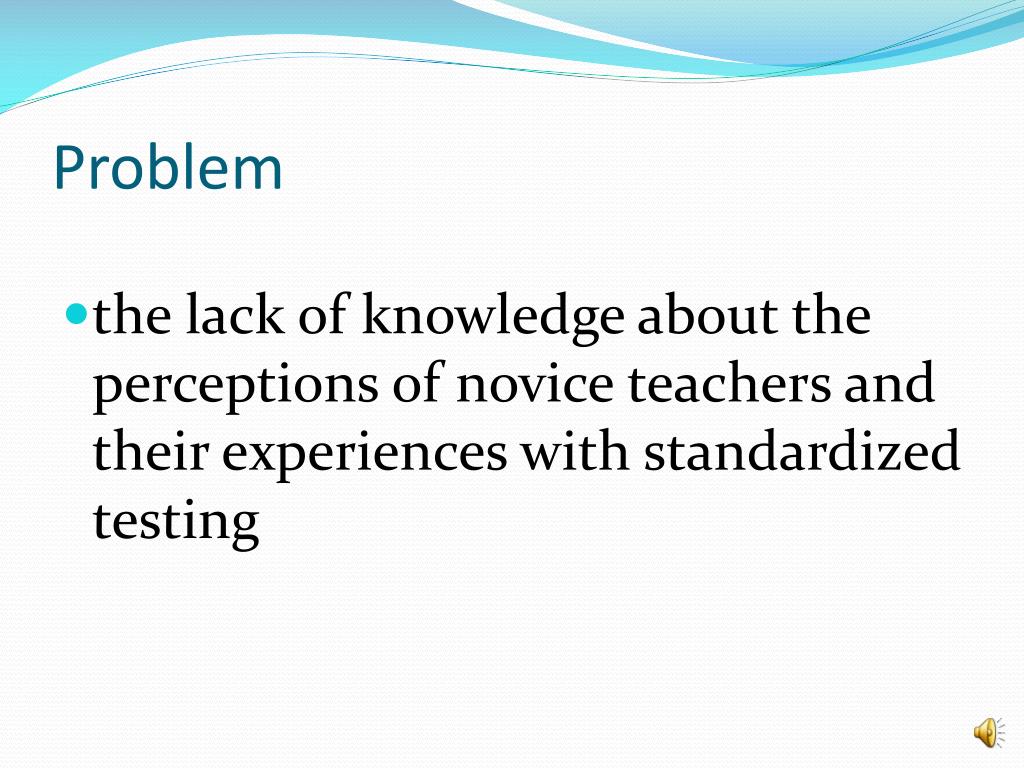 Problem • the lack of knowledge about the perceptions of novice teachers and their experiences with standardized testing
