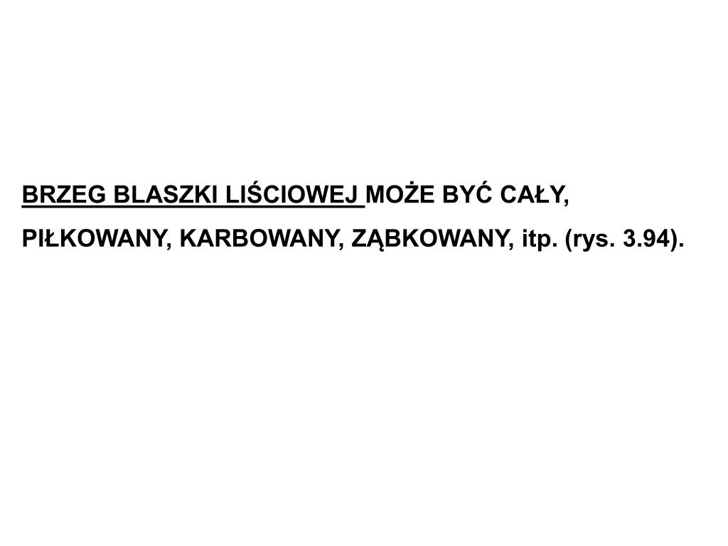 BRZEG BLASZKI LIŚCIOWEJ MOŻE BYĆ CAŁY, PIŁKOWANY, KARBOWANY, ZĄBKOWANY, itp. (rys. 3.94).