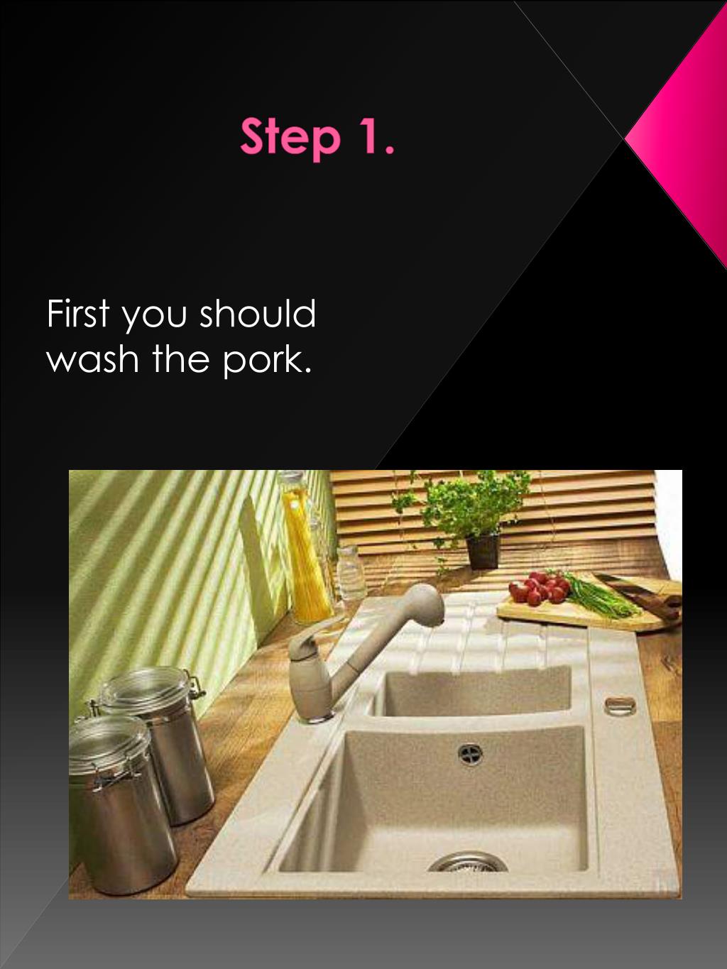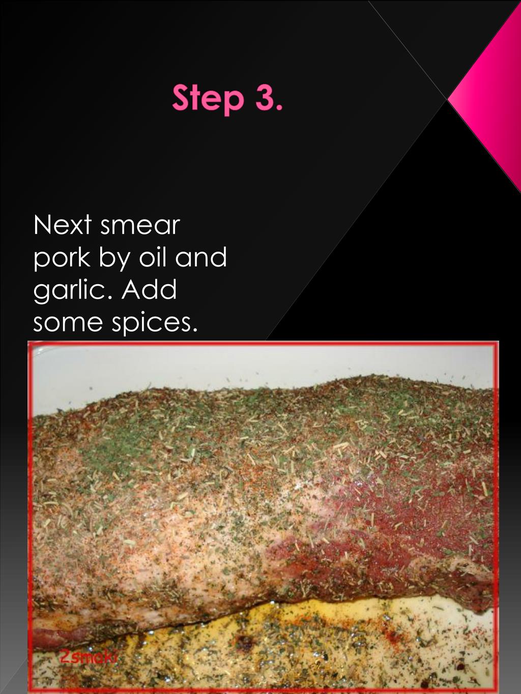 Step 3. Nextsmearpork by oil and garlic. Addsomespices.
