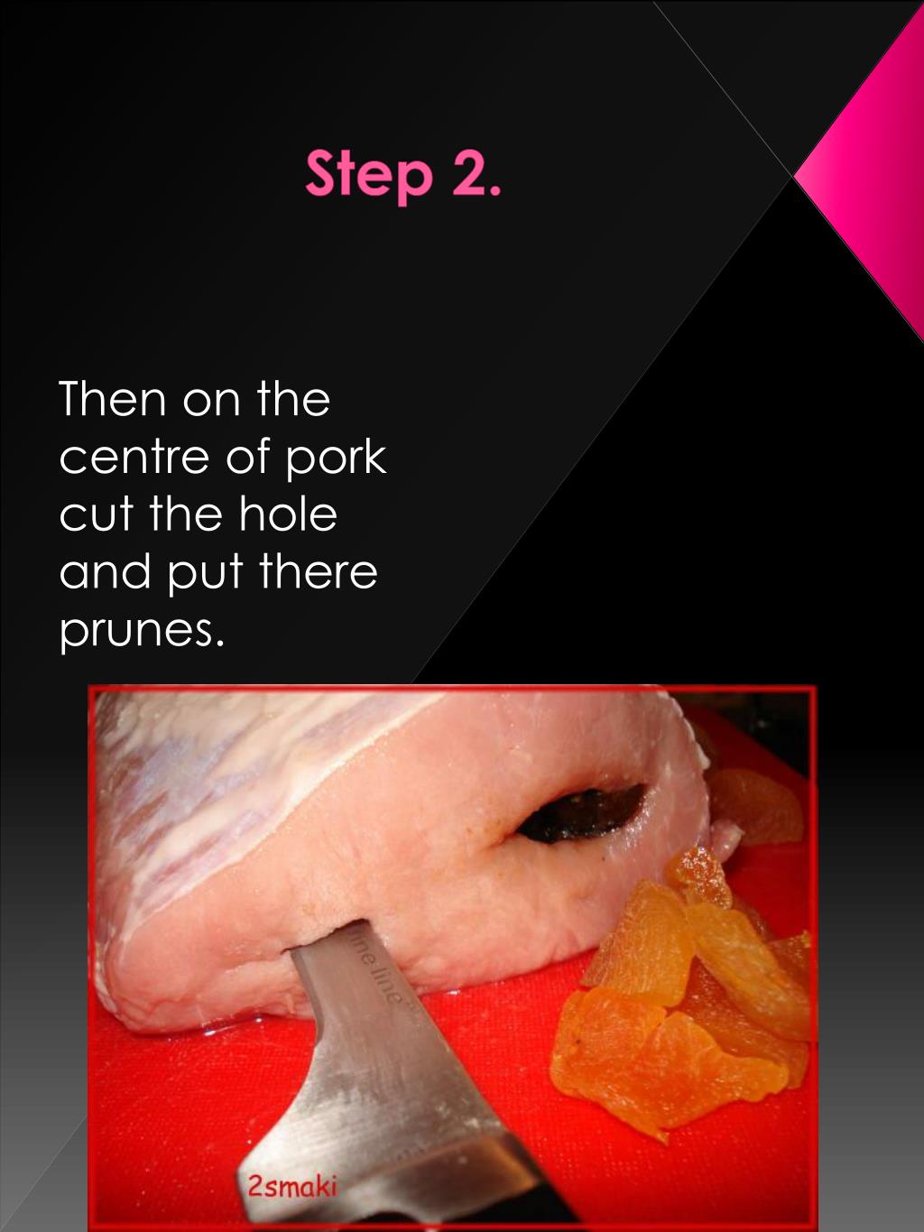 Step 2. Then on thecentre of porkcutthe hole and putthereprunes.