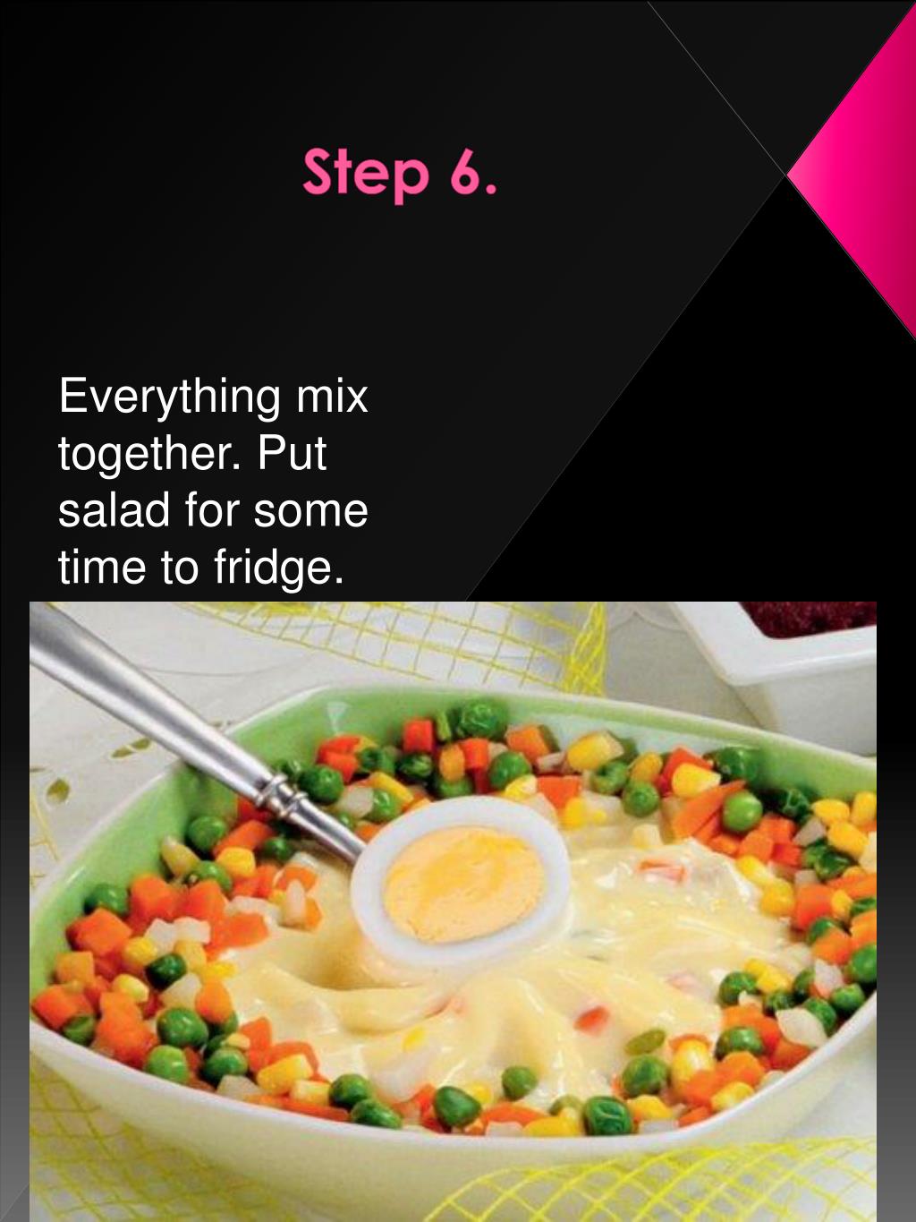 Step 6. Everything mix together. Putsalad for some time to fridge.