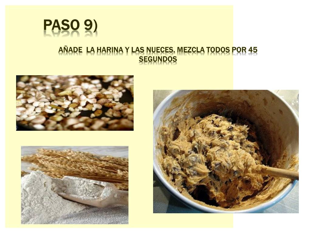 Paso 9) Añade la harina y lasnueces. Mezclatodospor 45 segundos