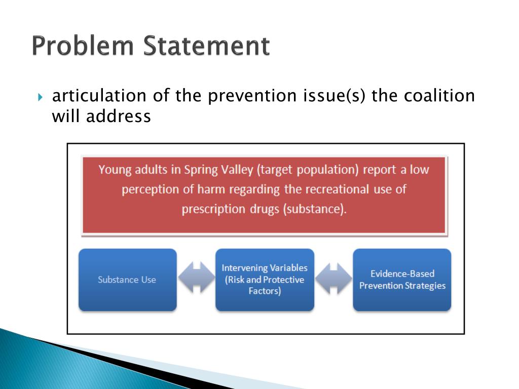 Problem Statement • articulation of the prevention issue(s) the coalition will address