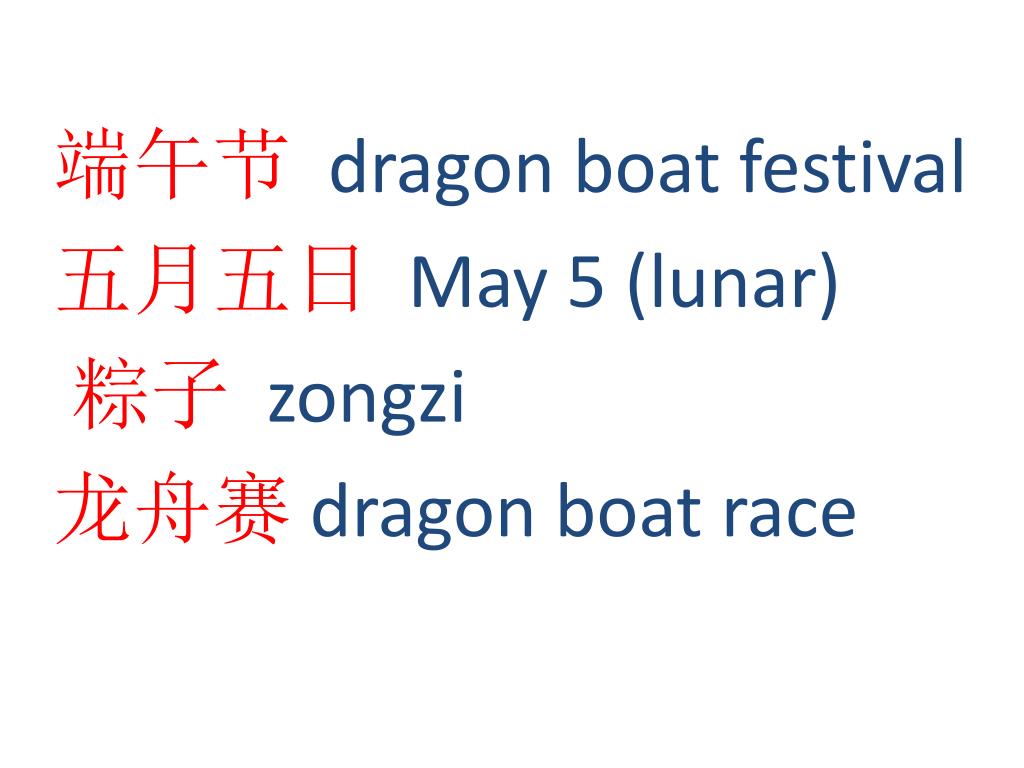 端午节 dragon boat festival 五月五日 May 5 (lunar) 粽子 zongzi 龙舟赛 dragon boat race