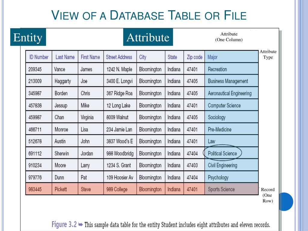 View of a Database Table or File Entity Attribute Attribute (One Column) Attribute Type Record (One Row)