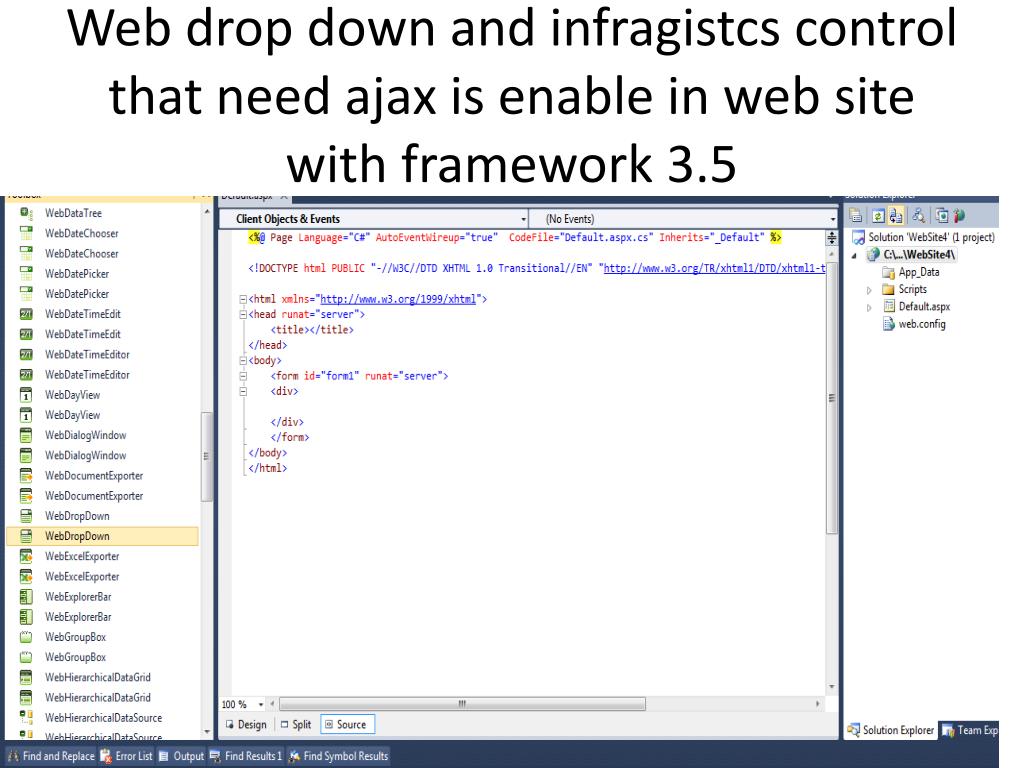 Web dropdown and infragistcs control thatneedajaxisenable in web sitewithframework 3.5