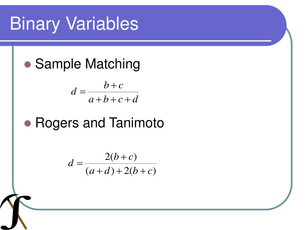 Binary Variables • Sample Matching • Rogers and Tanimoto