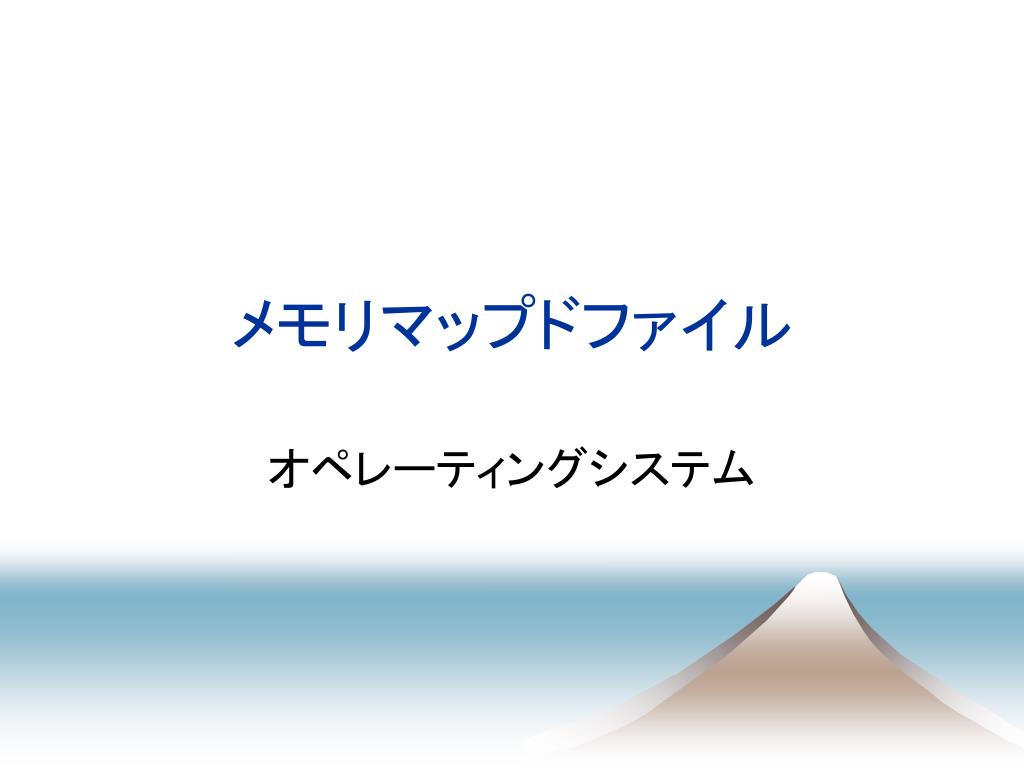 メモリマップドファイル: Windows API • h = CreateFile(file, access, …);m = CreateFileMapping(h, …);a’ = MapViewOfFileEx(m, prot, offset1, offset2, n, a); • prot = FILE_MAP_COPYでMAP_PRIVATEと似た効果を持つ