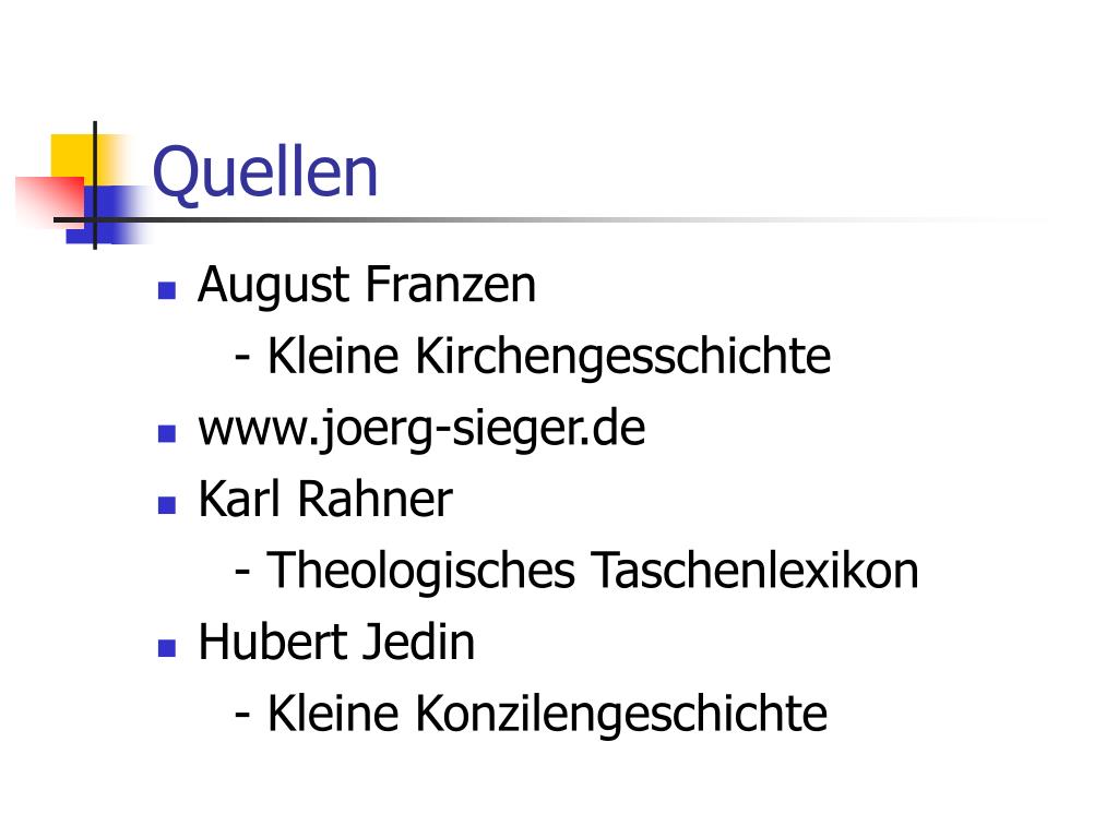 Quellen • August Franzen - Kleine Kirchengesschichte • www.joerg-sieger.de • Karl Rahner - Theologisches Taschenlexikon • Hubert Jedin - Kleine Konzilengeschichte