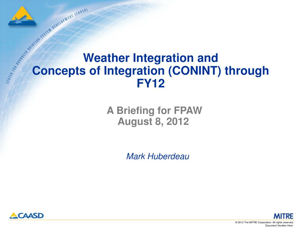 Weather Integration and Concepts of Integration (CONINT) through FY12 A Briefing for FPAW August 8, 2012 Mark Huberdeau