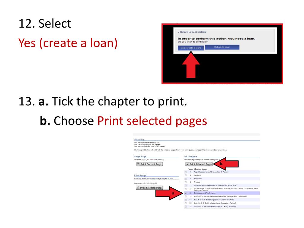 12. Select Yes (create a loan) 13. a. Tick the chapter to print. b.Choose Print selected pages