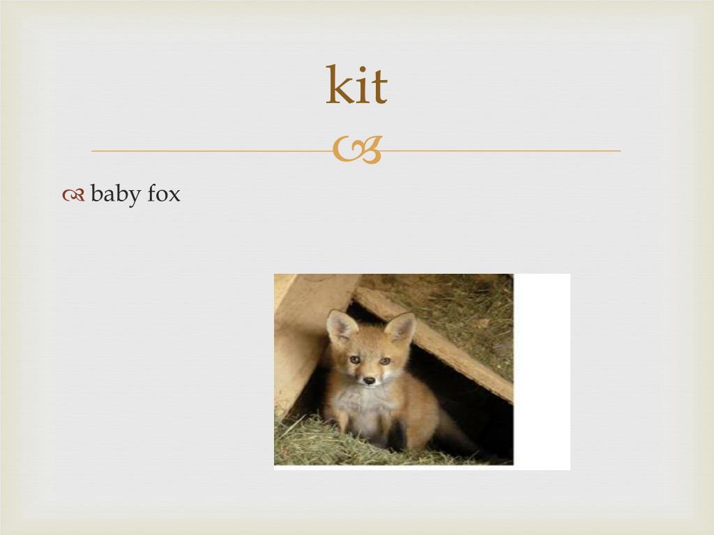 Content Words: Young Animals Animals. V3L16V4L14. Cub. A young animal that eats meat (bear, lion, tiger). kit. baby fox. piglet. a baby pig. gosling. A baby goose. calf. Young born to cows, whales, or elephants. foal. A young horse or donkey. cygnet. A young swan. fawn.