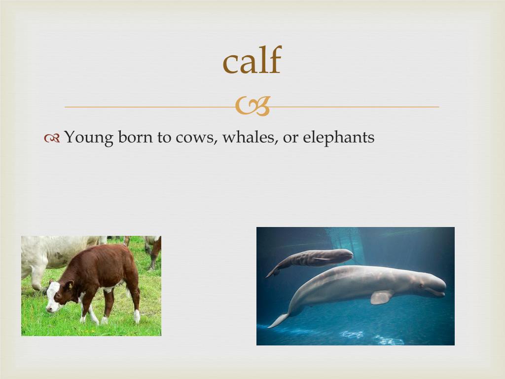 calf • Young born to cows, whales, or elephants