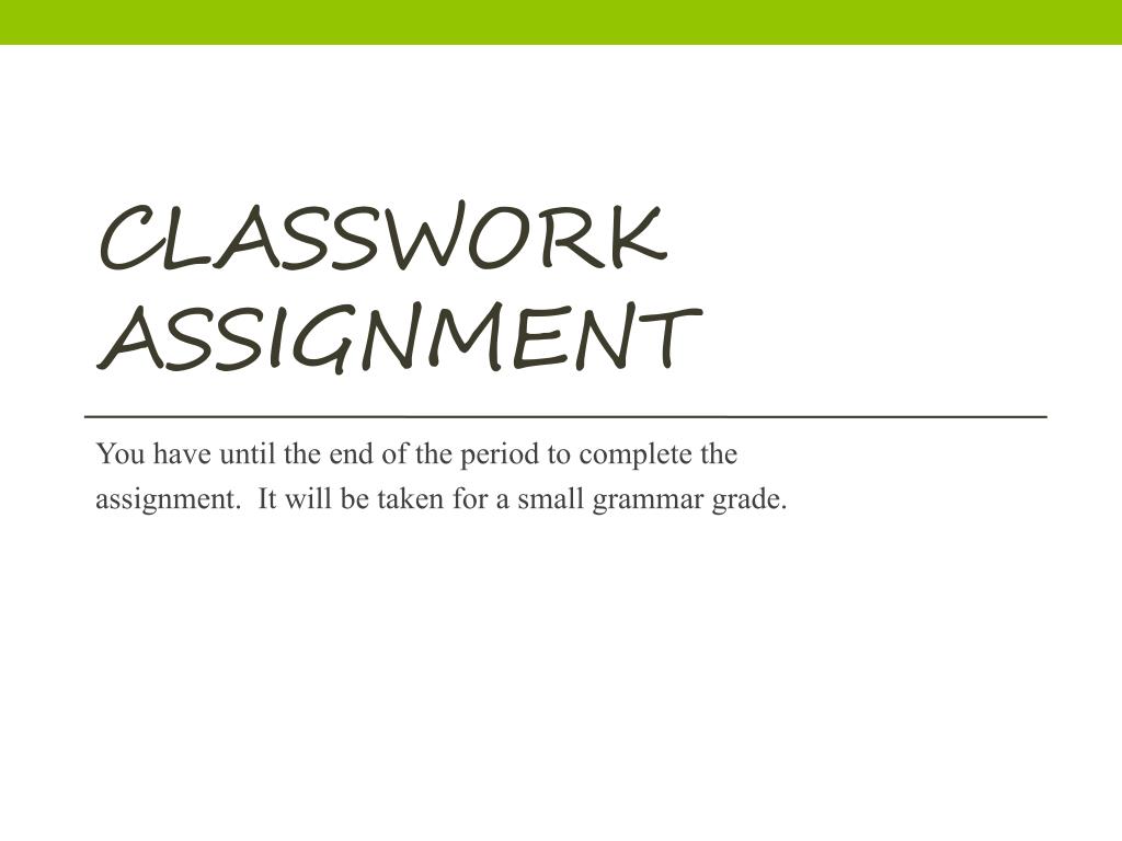 Classwork assignment You have until the end of the period to complete the assignment. It will be taken for a small grammar grade.