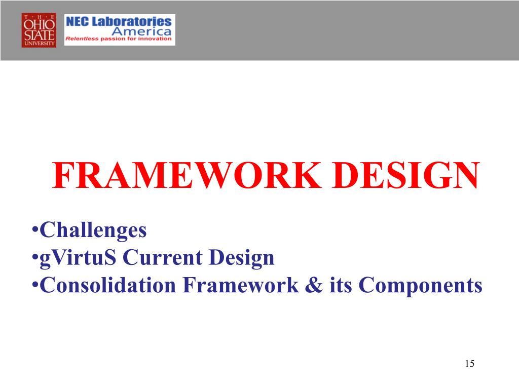 Challenges • gVirtuS Current Design • Consolidation Framework & its Components FRAMEWORK DESIGN