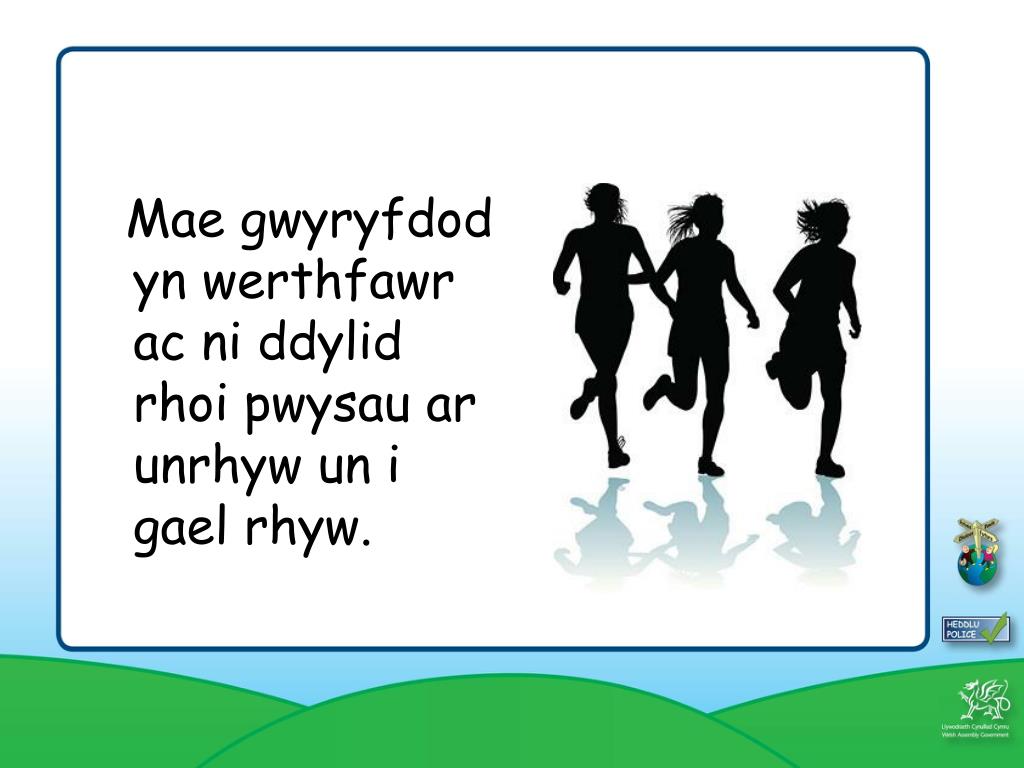 Adnodd 5e Datgnaidau. Collodd fy ffrind gorau ei gwyryfdod wythnos diwethaf Rydw i am fod yn debyg iddi. Mae fy nghariad yn fy annog i gael rhyw. Fe fyddai’n well i mi ei blesio. Mae fy nghariad yn bygwth fy ngadael os na chaf ryw, efallai y dylwn.