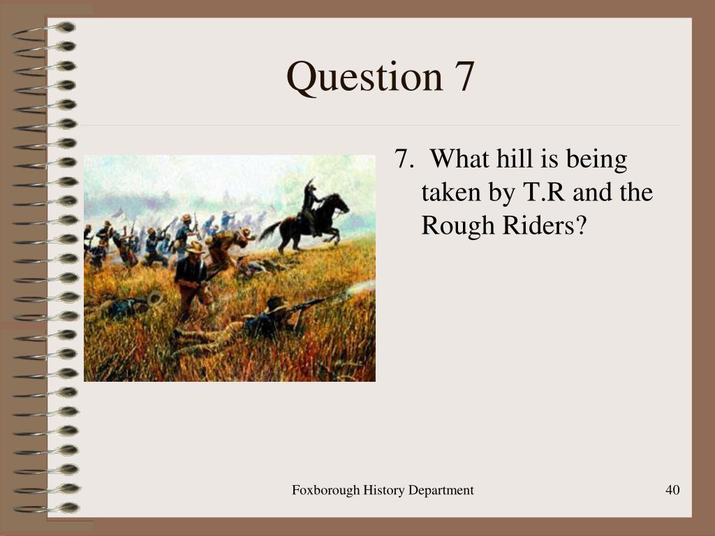 Question 7 7. What hill is being taken by T.R and the Rough Riders? Foxborough History Department