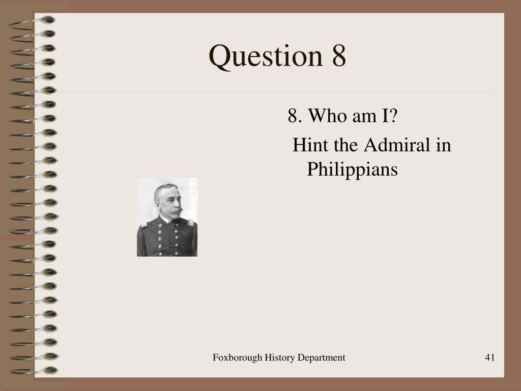 Question 8 8. Who am I? Hint the Admiral in Philippians Foxborough History Department