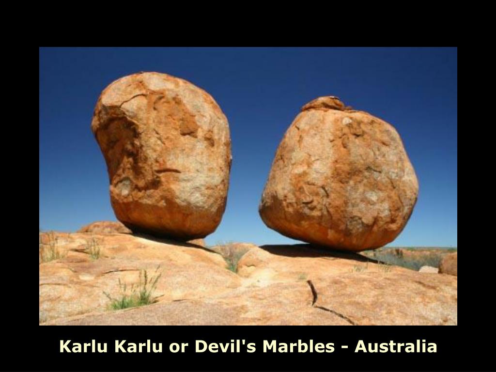 Árbol de Piedra - Bolivia. Bárdenas Reales – Navarra.España. Balanced Rock, Garden of the Gods Colorado, USA. Boulders - Nueva Zelanda. Brimham Rock - England, UK. Bryce Canyon National Park - Utah, USA. Cinglera del Capelló - España. Delicate Arch - Utah, USA.