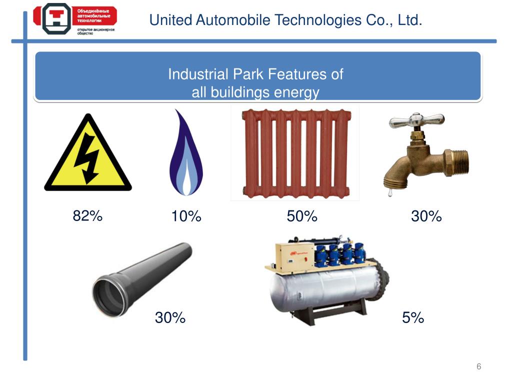 United Automobile Technologies Co., Ltd. Industrial Park Features of all buildings energy 82% 10% 50% 30% 30% 5% 6