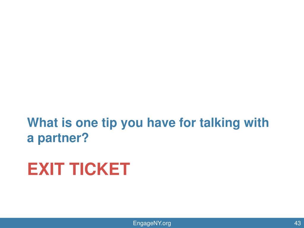 What is one tip you have for talking with a partner? EXIT TICKET EngageNY.org