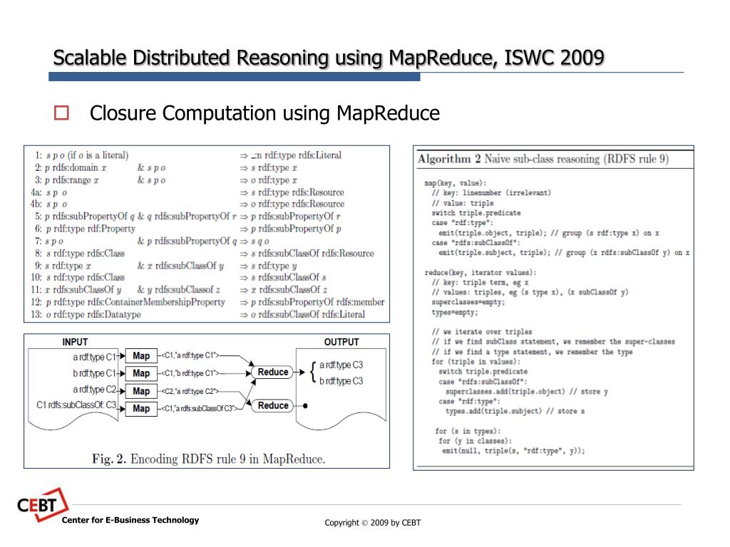 Scalable Distributed Reasoning using MapReduce, ISWC 2009 • Closure Computation using MapReduce Center for E-Business Technology
