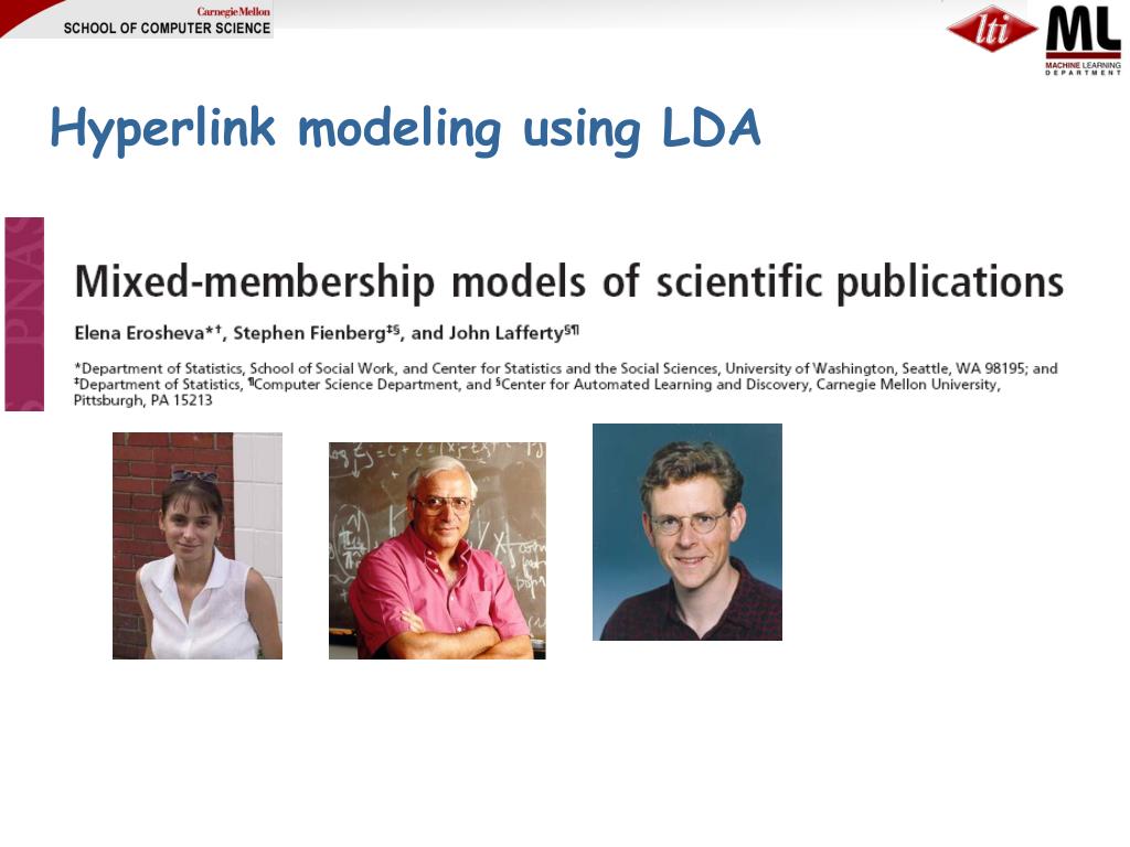 Hyperlink modeling using LDA[Erosheva, Fienberg, Lafferty, PNAS, 2004]