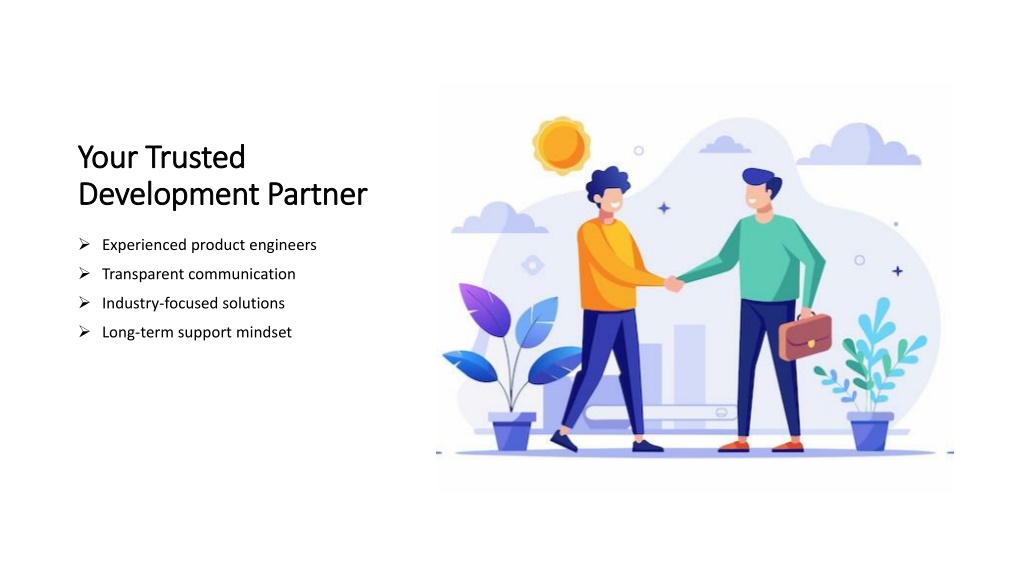 Your Trusted Development Partner Experienced product engineers Transparent communication Industry-focused solutions Long-term support mindset