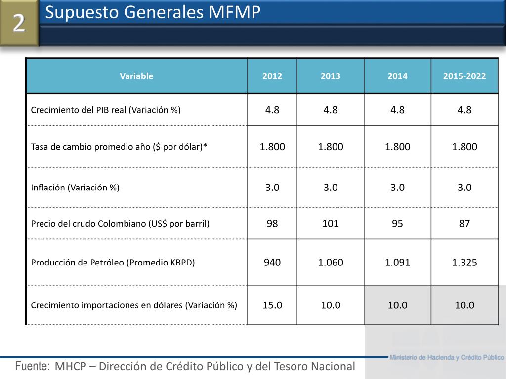 Supuesto Generales MFMP 2 MHCP – Dirección de Crédito Público y del Tesoro Nacional