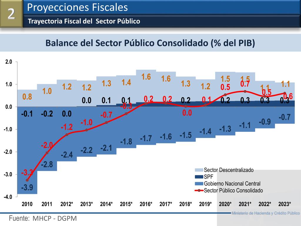 Trayectoria Fiscal del Sector Público Proyecciones Fiscales 2 MHCP - DGPM Balance del Sector Público Consolidado (% del PIB)