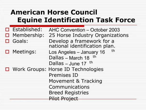 1. American Horse Council Equine Identification Task Force Established: AHC Convention October 2003