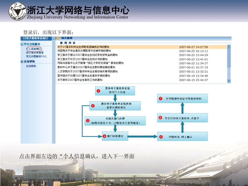 毕业生电子离校服务系统 2007年11月 浙江大学网络与信息中心 Zhejiang University Networking and lnformation Center