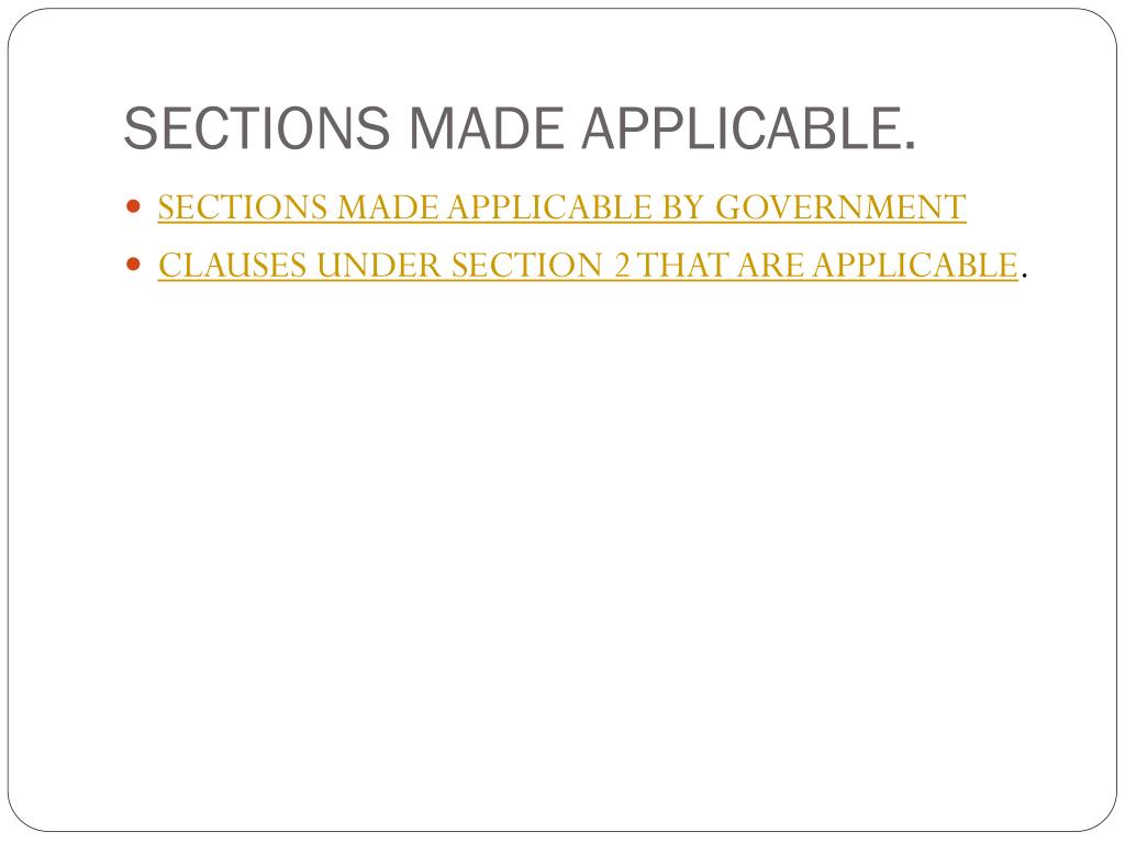 SECTIONS MADE APPLICABLE. • SECTIONS MADE APPLICABLE BY GOVERNMENT • CLAUSES UNDER SECTION 2 THAT ARE APPLICABLE.