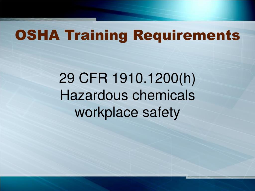 OSHA Training Requirements 29 CFR 1910.1200(h)Hazardous chemicals workplace safety