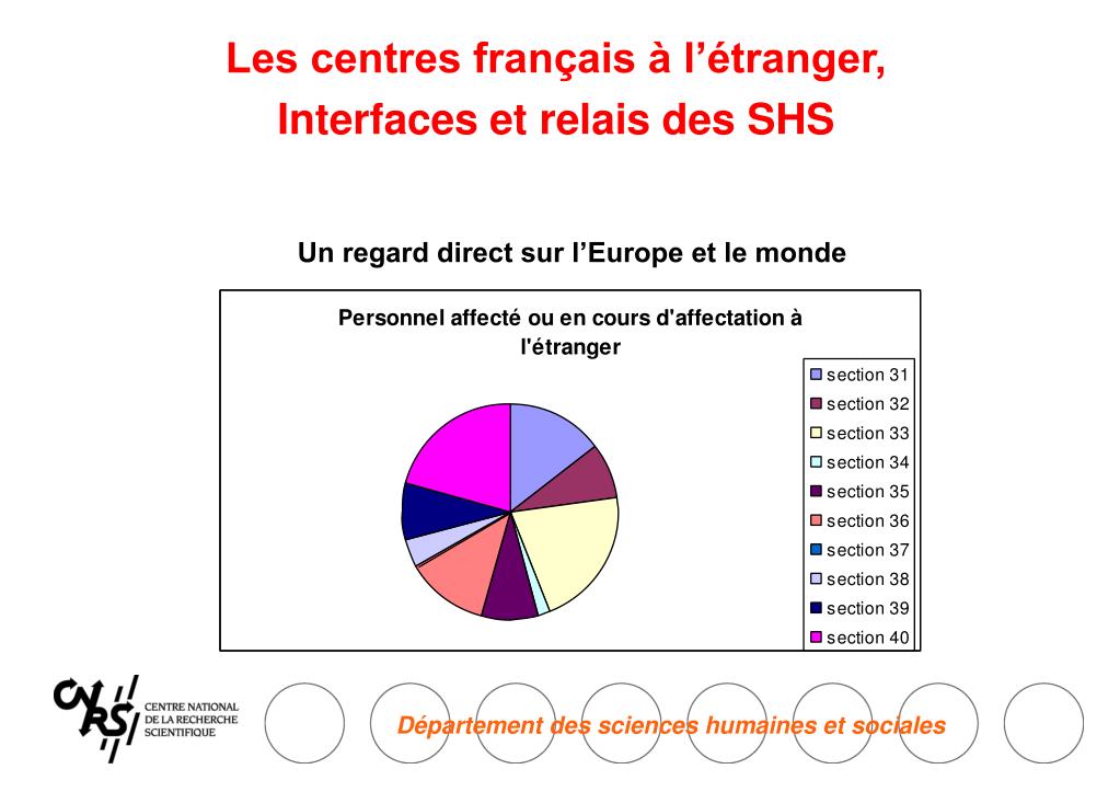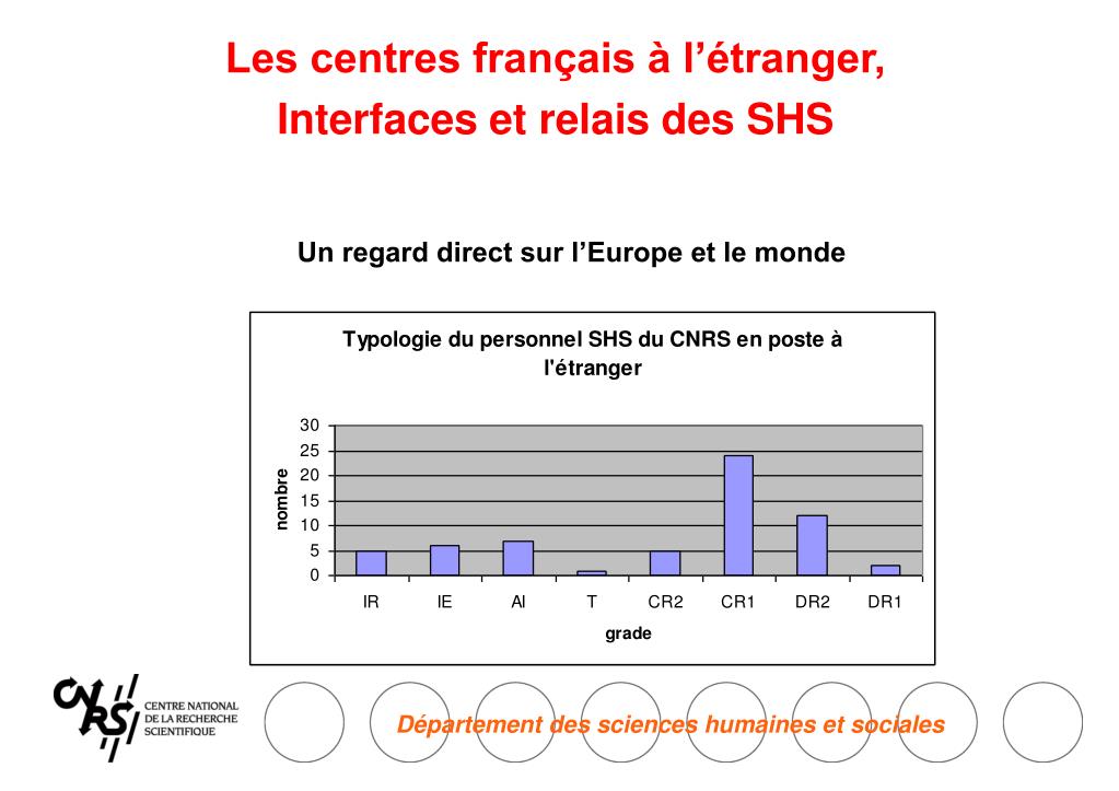 Les centres français à l’étranger, Interfaces et relais des SHS Un regard direct sur l’Europe et le monde Département des sciences humaines et sociales