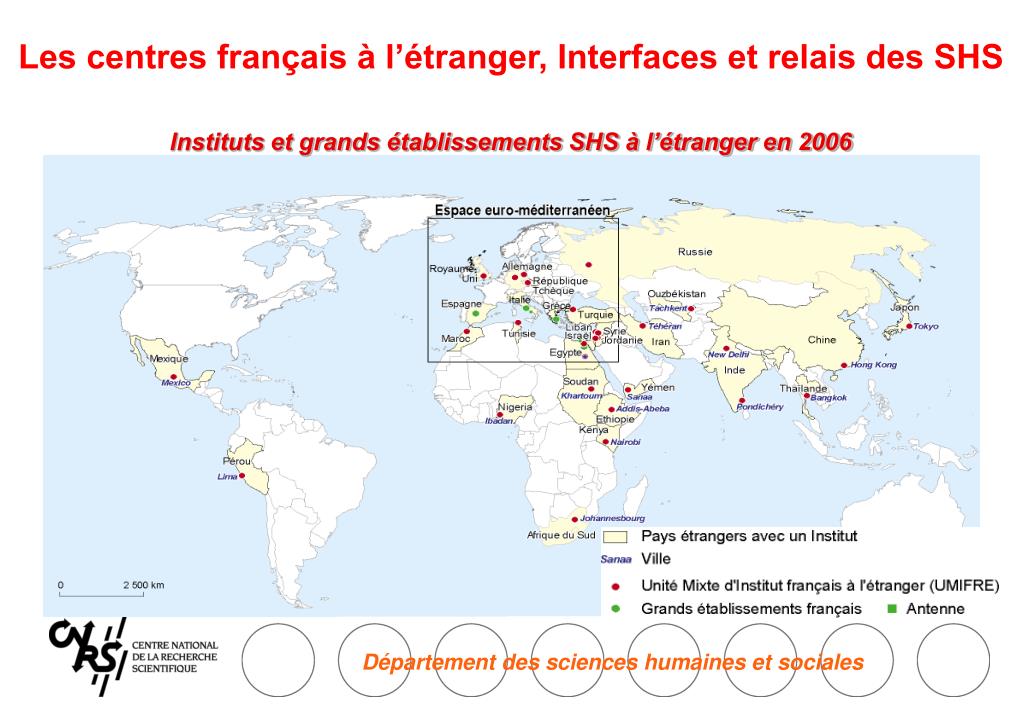 Les centres français à l’étranger, Interfaces et relais des SHS Instituts et grands établissements SHS à l’étranger en 2006 Département des sciences humaines et sociales