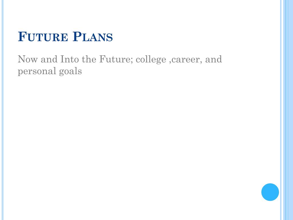 Future Plans Now and Into the Future; college ,career, and personal goals