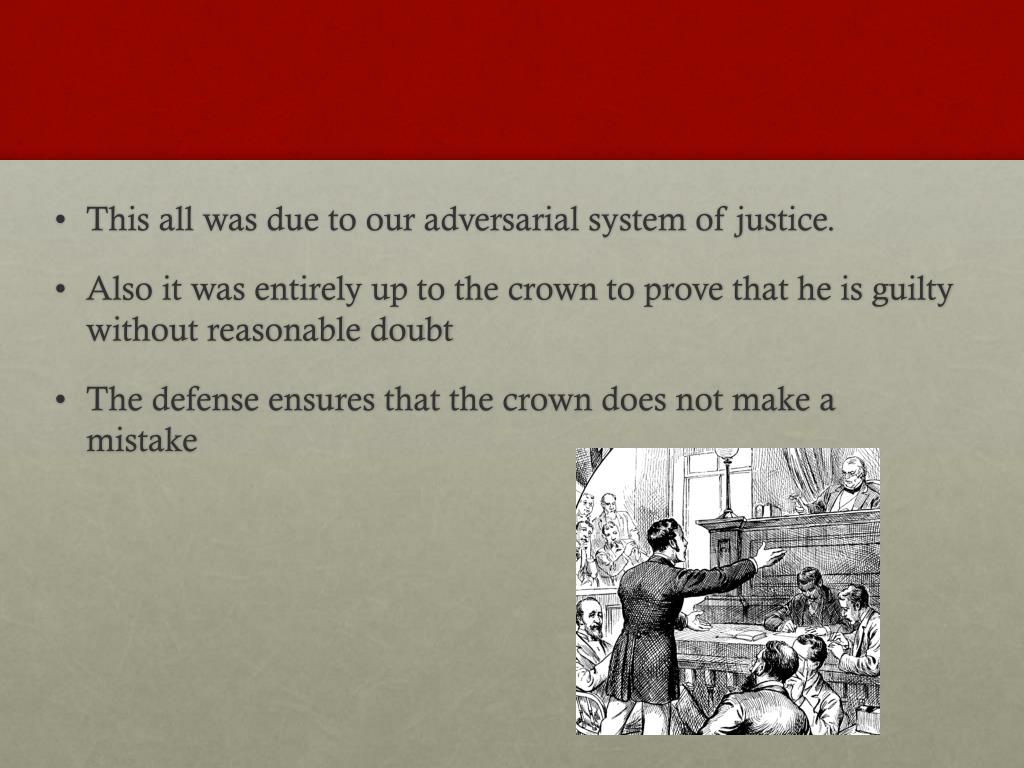 This all was due to our adversarial system of justice. • Also it was entirely up to the crown to prove that he is guilty without reasonable doubt • The defense ensures that the crown does not make a mistake