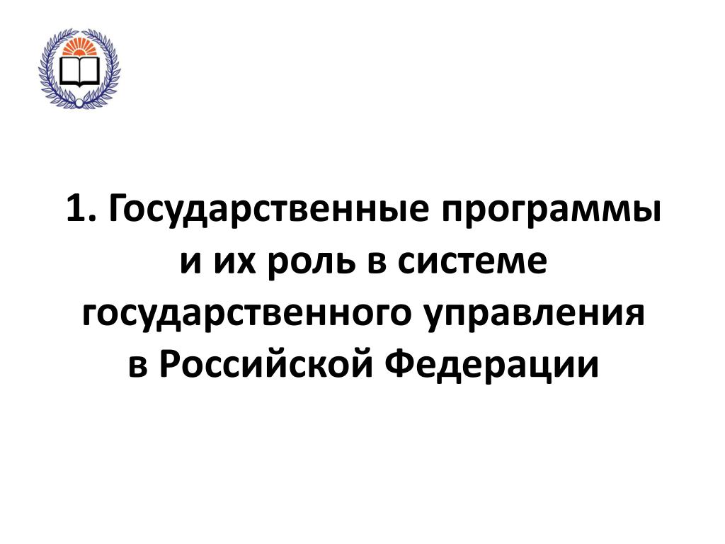1. Государственные программы и их роль в системе государственного управления в Российской Федерации