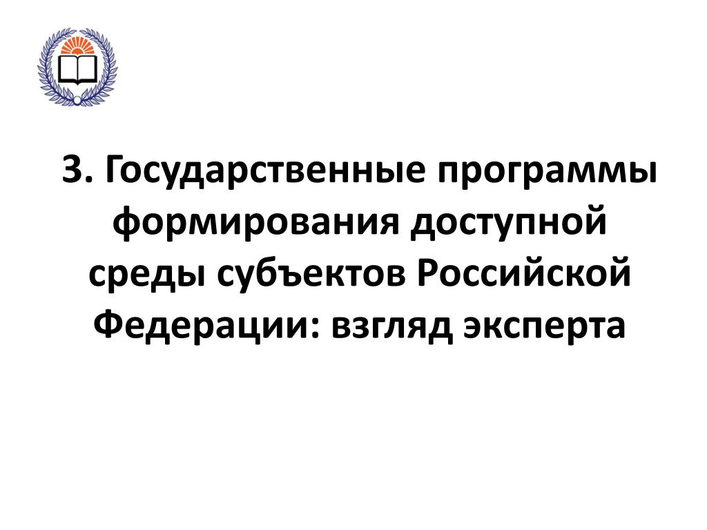 3. Государственные программы формирования доступной среды субъектов Российской Федерации: взгляд эксперта