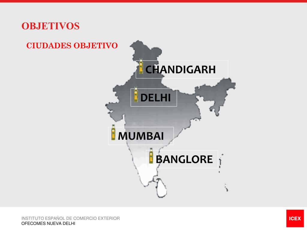 CHANDIGARH • DELHI • MUMBAI • BANGLORE OBJETIVOS CIUDADES OBJETIVO INSTITUTO ESPAÑOL DE COMERCIO EXTERIOR OFECOMES NUEVA DELHI