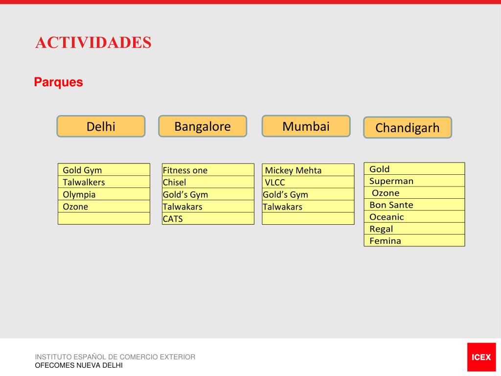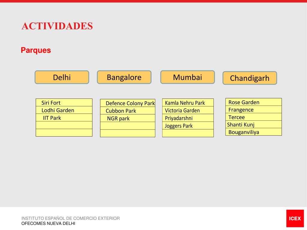 ACTIVIDADES Parques Mumbai Bangalore Delhi Chandigarh INSTITUTO ESPAÑOL DE COMERCIO EXTERIOR OFECOMES NUEVA DELHI