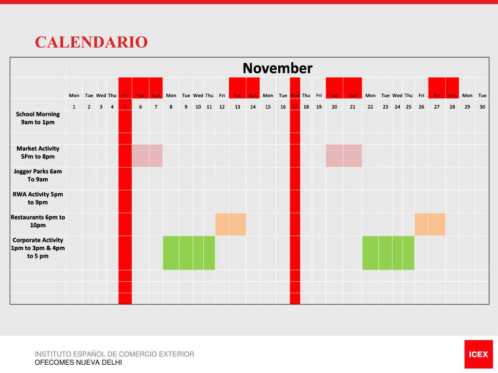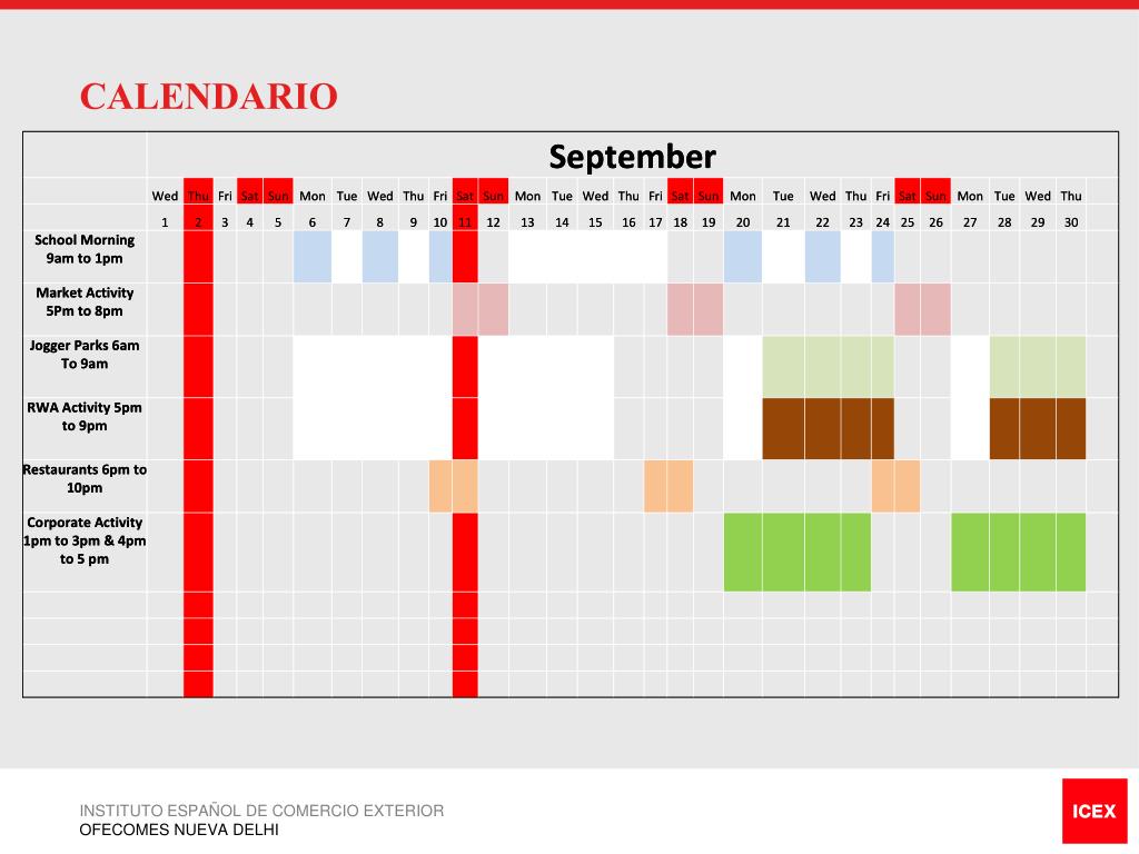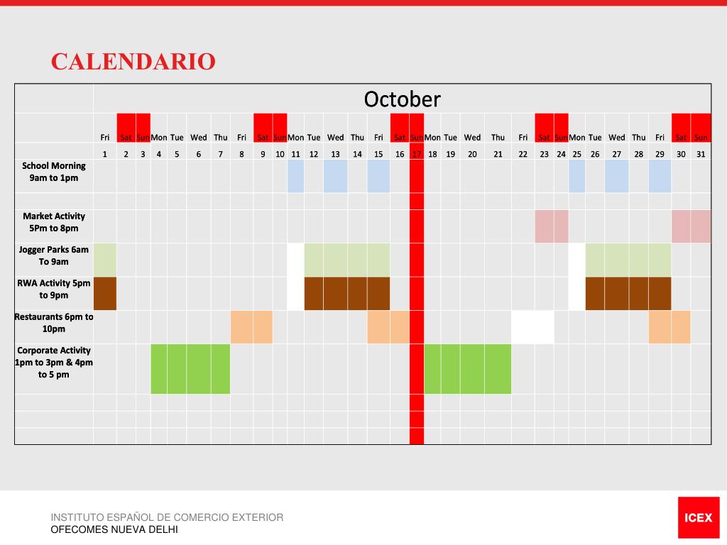 CALENDARIO INSTITUTO ESPAÑOL DE COMERCIO EXTERIOR OFECOMES NUEVA DELHI