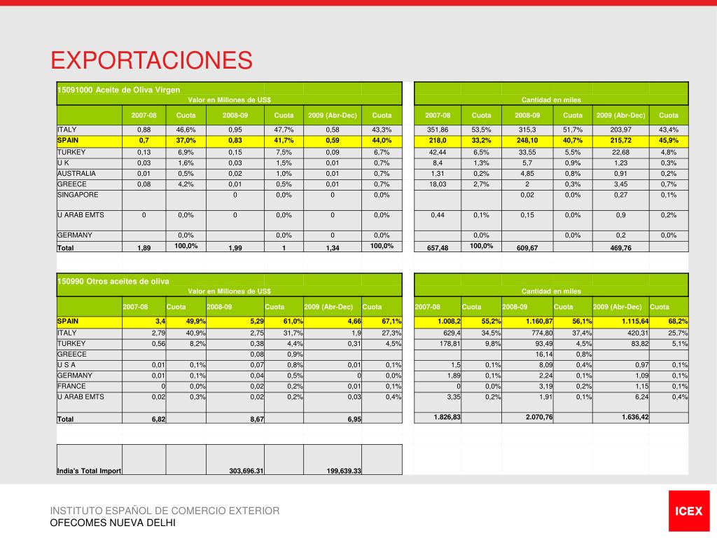 EXPORTACIONES INSTITUTO ESPAÑOL DE COMERCIO EXTERIOR OFECOMES NUEVA DELHI